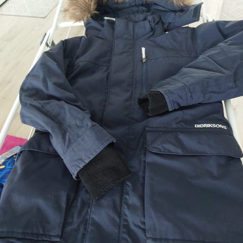 Myynnissä tummansininen parkatakki, koko 130cm