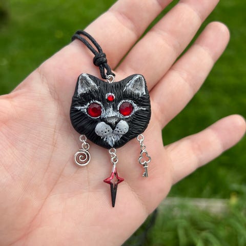 musta - kissa - kissan muotoinen - koriste - laukkuun - laukku - laukkukoru - pom pom - tekoturkis - avaimenperä - gootti - goth - gothic
