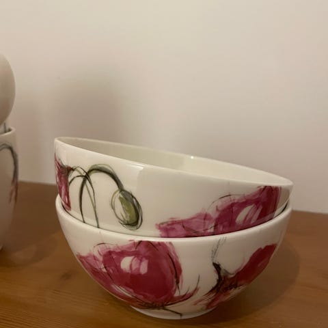 Myydään kuvanmukaiset, todella vähälle käytölle jääneet Pentikin Eden -sarjan tarjoilukulhot, jossa kauniita unikkoja. Oikein hyvässä kunnossa siis molemmat. Toinen punainen, toinen harmaa. Materiaali: keramiikka. Halkaisija 25cm, korkeus 10 cm. Kestää konepesun, uunin ja mikron. Suunnittelija Minna Niskanen.