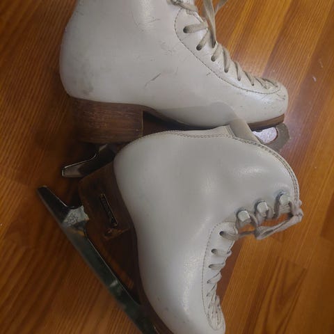 Risport taitoluistimet koossa 215, joka taulukon mukaan vastaa kokoa 32. Olleet viime vuodet vain satunnaisessa käytössä.
