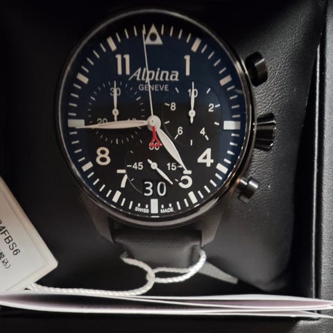 Elämää nähnyt Alpina miesten vetokello. Käy ja pitää aikaa muutaman tunnin seurannalla. Nuppi jäykkä osoitinsiirrossa. Takakansi ottanut joskus osumaa ja lasi erittäin naarmuinen. Vaikuttaisi omaan silmään kuitenkin että itse taulu ihan siisti. Lasin vaihdolla ja pienellä huollolla voi siis saada ihan hienon patinoituneen yksilön. Koko 34mm, 36mm kruunulla. Lug to lug 42mm ja lugiväli 18mm. Yksi lugikin taitaa olla ihan pikkasen vääntynyt. Korjattavaksi tai osiksi. Nouto Turusta tai postikulut ostajalle.