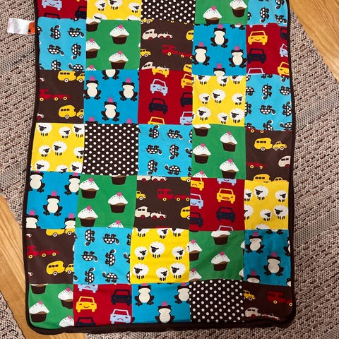 Upea, yksityiskohtainen tilkkupeitto. Saatu lahjaksi, muttei ihan meidän juttu, joten täysin uusi.