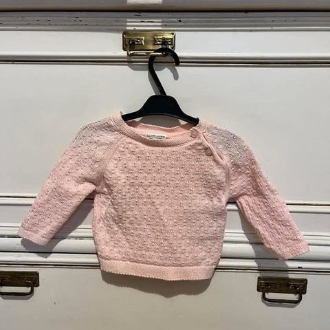 Käsityönä tehty vaaleankeltainen neuletunika. Koko arviolta 68-74. Käyttämätön.