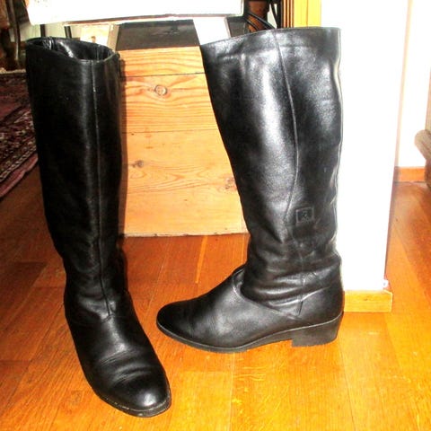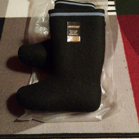 Kunto on muutoin oikein hyvä, mutta kumipohjissa on murtumia, ks. viimeinen kuva. Pakkaskelillä ovat kuitenkin olleet käyttökelpoiset näinkin.