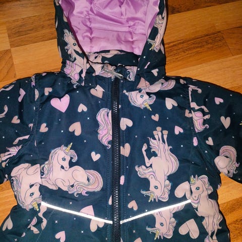 Toimivat vetoketju ja nepparit, kangas kaikkialla ehjä. Kai-kai 39cm, yhdellä lapsella käytetty