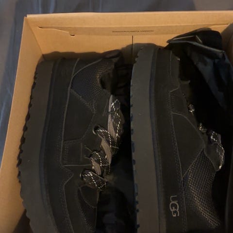 Myydään hyvässä käytetyssä kunnossa olevat mustat UGG Classic Short II -saappaat koossa 41 (26,5 cm). En löydä vikoja, paitsi pientä pintapölyä, mikä lähtee pyyhkimällä.