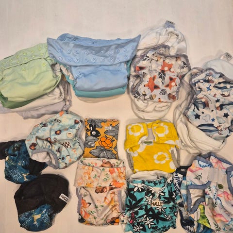 Myydään 5 kpl Myllymuksut AIO vaippoja NB, 5 kpl lisäimuja sekä vaippapussi. Suurin osa käyttämättömiä. Saa tarjota.