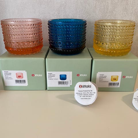 Myynnissä kuvien mukaiset Iittalan Kastehelmi kynttilälyhdyt.