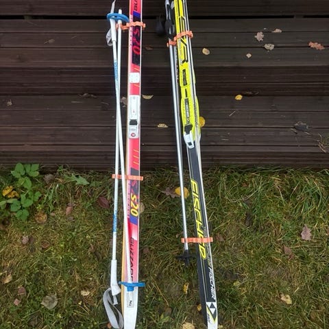 Lasten suksi ja sauva setti. Sukset 100cm. Eivät tarvi monoja. Suksissa oma kiinnitys. Sauvat 80cm.