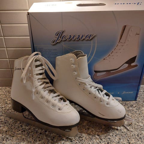 Stadiumin valkoiset kaunoluistimet, koossa 34. Sisämitta n. 21,5cm.