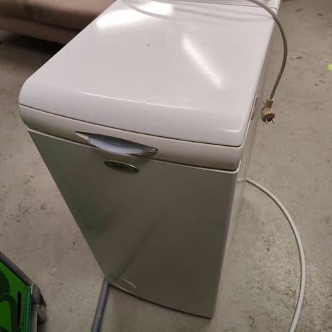 Whirlpool päältä täytettävä pesukone valkoisella värillä. Pesukone on suunniteltu pyykin pesuun ja siinä on useita pesuohjelmia erilaisille tekstiileille. Pesukone on 90cm korkea, 40cm leveä ja 59cm pitkä. Voit myös tarjota mieleistä hintaa