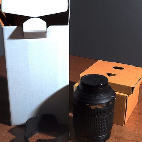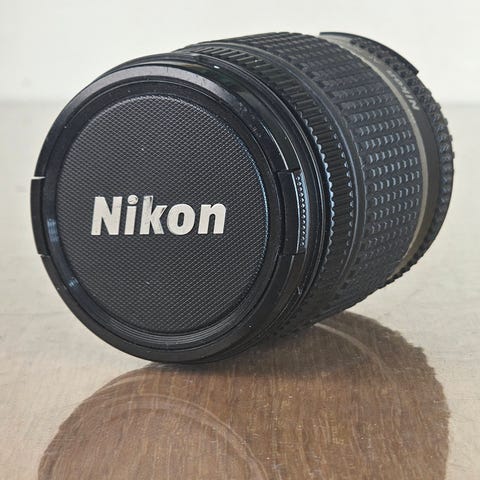 Nikonin 105mm f2.5 Pre-AI telelinssi. Hyvin toimiva ja siisti. Pupunkorvat puuttuu.