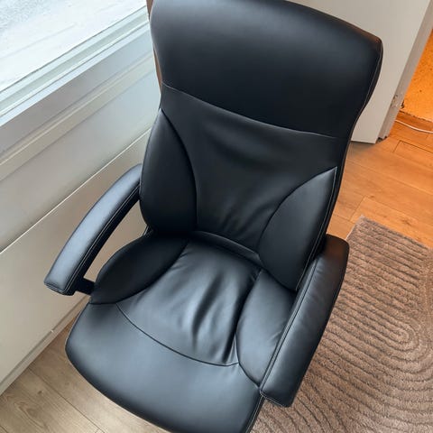 Product link: https://jysk.fi/tyohuone/tyotuolit/toimistotuoli-tamdrup-memory-vaahtomuovi-musta-keinonahka