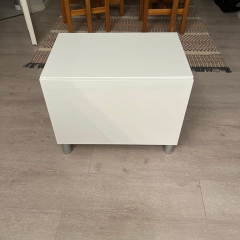 Hyväkuntoinen säilytyskaappi kahdella hyllyllä.