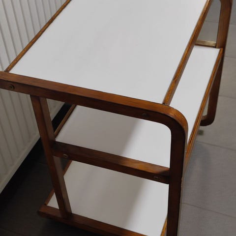 Hyväkuntoinen tarjoiluvaunu/sivupöytä. Ollut käytössä keittiössä apupöytänä. Pienet vedettävät laatikot sivuissa. :)
