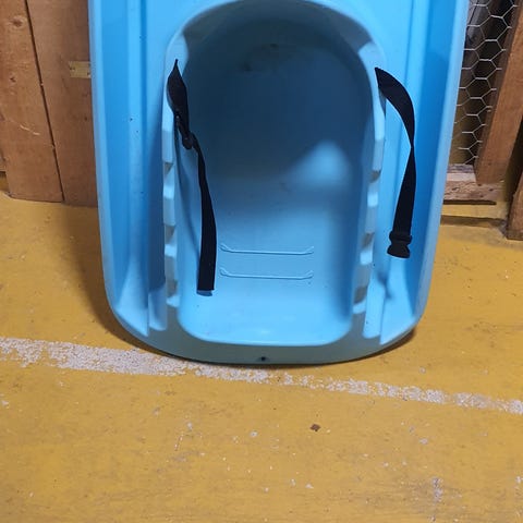 Annetaan Ortexin vauvapulkka. Takakulma puhki muttei haittaa menoa.