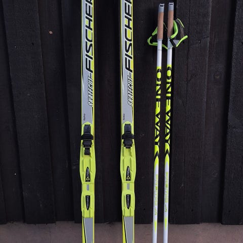Fischerin kisakäytössä olleet 161cm luistelusukset. Viime vuoden lähes kaikki kisat hiihdettiin tällä parilla. Pohjat hiottu Vuokatissa. Toisen suksen pohjassa pieni painauma suksen kärkiosassa, jonka huomaa voidellessa. Painauma ei vaikuta suksen toimintaan.