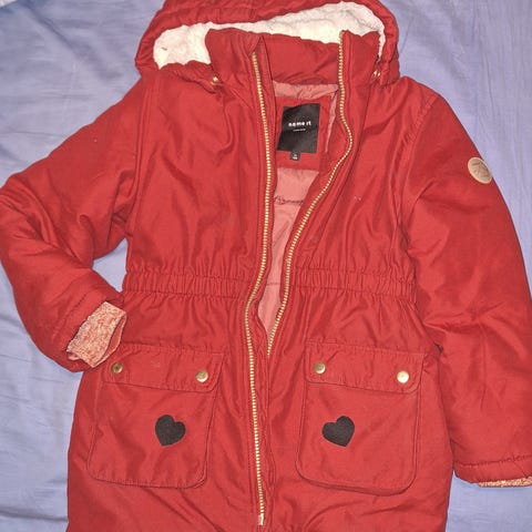 Myydään vain muutaman kerran käytetty ihana lasten pidempimallinen takki, kokoa 120cm.