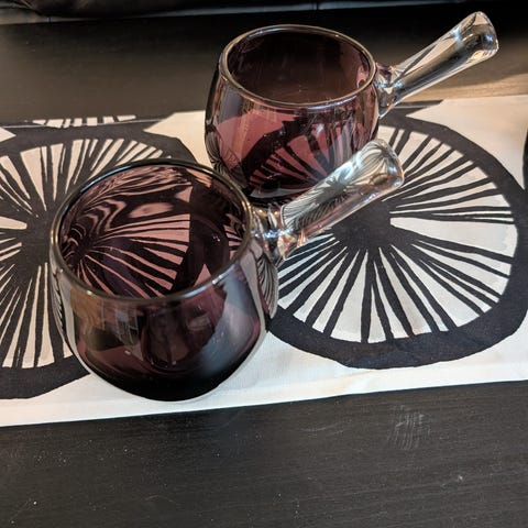 Myydään Kumelan Lasitehtaan Sarvituoppi, väri purppura/lila