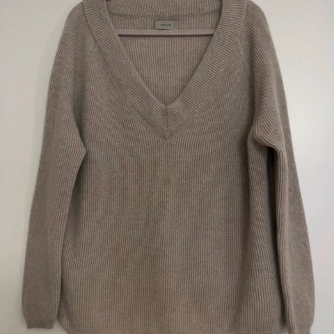 Bmuirin neule, koko M, valmistettu 100 % kashmirista. Väri savunsininen. Väljä malli, pehmyt ja kevyt materiaali. Vähän käytetty, siisti.