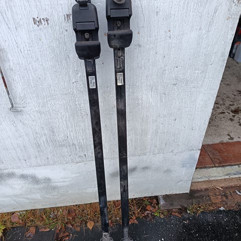 Myydään kattokaiteisiin käyvät telineet. Max leveys kaiteiden ulkoreunaan n 100 cm. Olleet VW Golfissa.