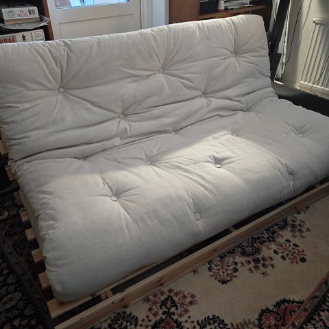 Hakusanat: Sänky, 160cm, futonpatja, futon, vuodesohva, levitettävä sohva, sohvasänky