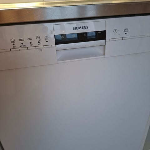 Siemens Astianpesukone valkoisena. Täysikokoinen malli, sopii kotitalouksien astianpesuun. Helppokäyttöinen ohjauspaneeli yläosassa. Noin viisi vuotta vanha.