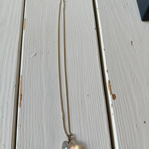 Hopeinen kaulakoru ja riipus, merkki tuntematon. Riipuksessa hiukan tummumaa, muuten hyvä.