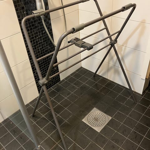 Pieneen säilytystilaan menevä amme kylvetystuella. Ammeessa on luistamaton pohja ja tyhjennystä helpottava muovitulppa pohjassa. Kylpytuki, helpottaa vastasyntyneen kylvettämistä. Sivuille merkityt aaltokuvioinnit auttavat täyttämään veden määrän sopivaksi kylpytukea käytettäessä. Käytönjälkiä, katso kuvat. Ei käytännön merkitystä.