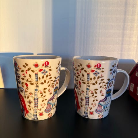 Kaksi Iittala Taika mukia mustavalkoisella kuviolla. 4dl muki.