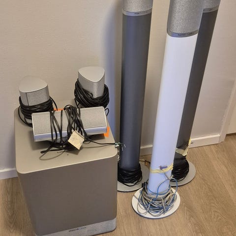 Huippuluokan setti , 2 kaiutinta, aktiivinen subwoofer, kaukosäädin. Blueray/cd/radio. Todella laadukas ja hyvä kuntoinen setti nyt pilkkahintaan. Nouda nyt nopeasti. Kaiuttimet saa pysty tolpista irti, jollei halua pitää näin korkeita tolppia. Todella siisti setti. Subbari pelkästään tämän setin arvoinen!!