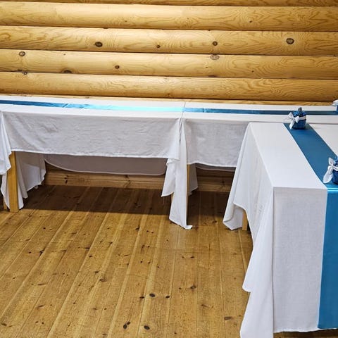 10 rullaa kuitukangas, kaitaliinoja. Olleet käytössä yksissä häissä. Kamera vääristää värin. Turkoosin vihertävän sävyjä, yksi on sininen, yksi avaamaton.