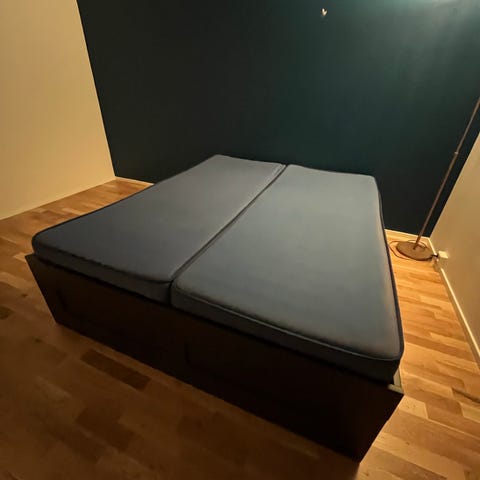Annetaan: BRIMNES Sängynpääty + säilytystila, musta 160 cm