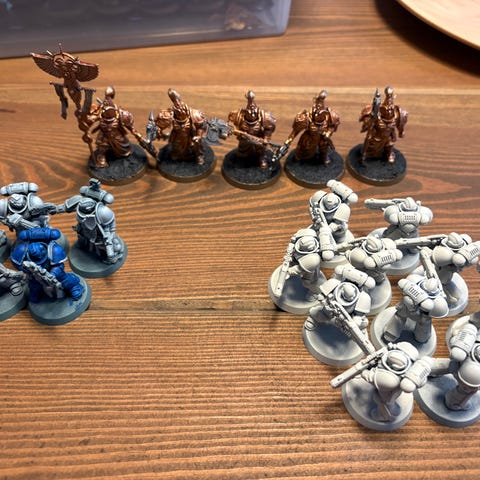 Myynnissä 5x outoa Vanguard veteraania ilman hyppyreppuja (eli Legends säännöt), ja 1x tee-se-itse Ancientti. Nää on Firstborn.