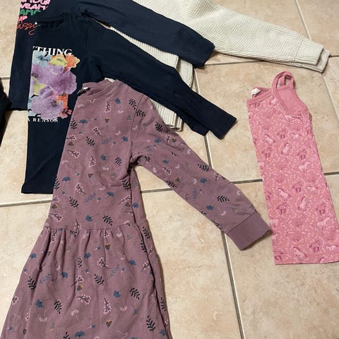 Kasa lasten vaatteita koot 116-128. Myydään pakettina.