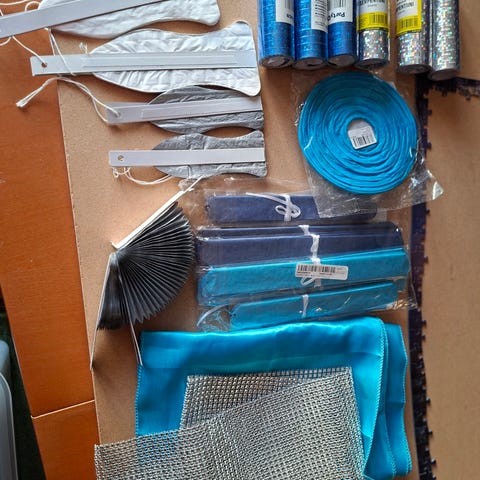 Tumman sininen harso viritelmä, esim. Pöydän reunaa koristamaan. Sinertävä, läpi kuultava pitkä harso. Tumman sinisiä orcanca paloja x määrä.