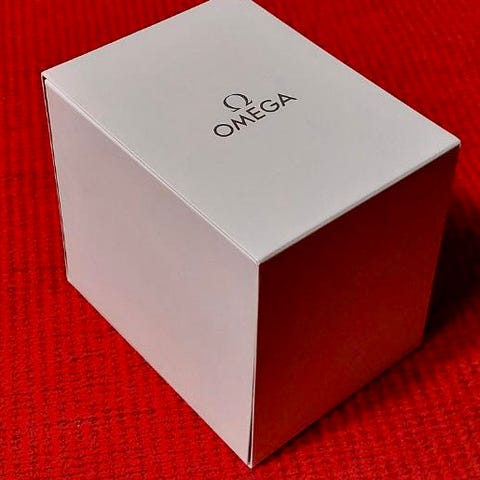 Kellohuollon yhteydessä saatu laatikko ja sen paperiset kuoret.
