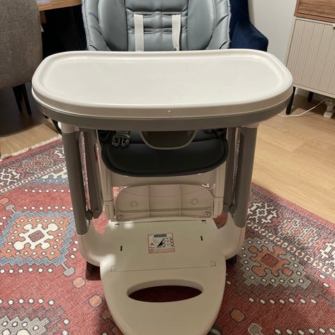 Ihan paras Peg Perego Tatamia syöttötuoli. Tätä parempaa ei varmasti ole (googlaa lisätietoa, ovh ollut yli 300e). Todella mukava lapselle, saa kallistettua, saa muutettua korkeutta, pyörät alla (ns. lukitus päällä niin ei rullaa vahingossa), irrotettava tarjotin irrotettavalla päällysosalla. Voi käyttää sitterinä vauvalla ja saa keinu asentoon. Tummanruskea keinonahkapäällinen, jossa kulumaa (katso kuvat), tähän saa tilattua uusia päällisiä (ainakin aliexpress myy edullisesti). Itse en ole kokenut tarvetta vaihtaa.