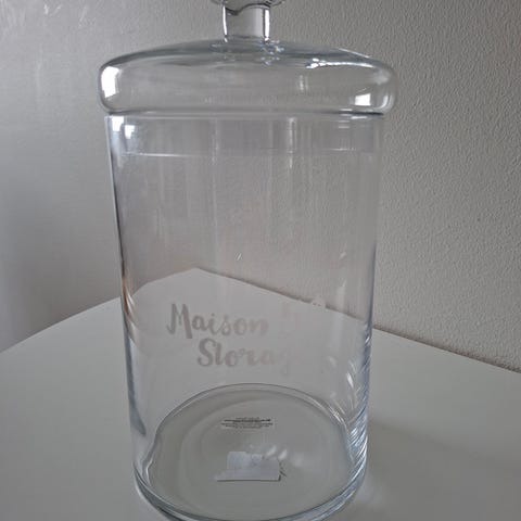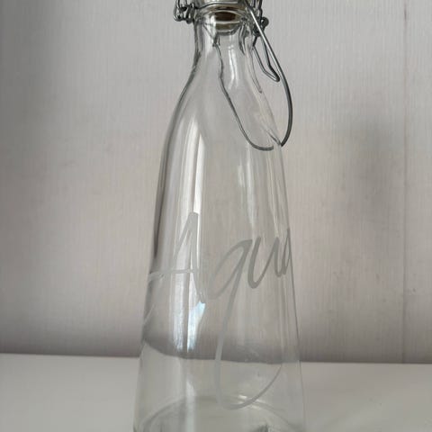 Lasinen RM-pullo, jonka korkeus 35 cm.