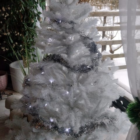 180 cm korkea muovikuusi. Jaettavissa kahteen osaan säilytyksen ja kuljetuksen helpottamiseksi.