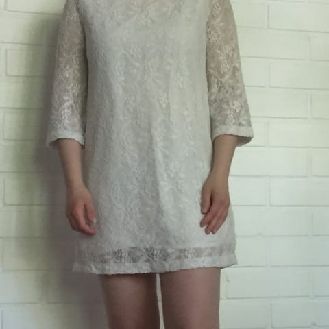 Cubus juhla- tai cocktailmekko sinisenä, koko 42. Valmistettu nailonista. Mekossa on pitsiyksityiskohtia ja vetoketju takana.