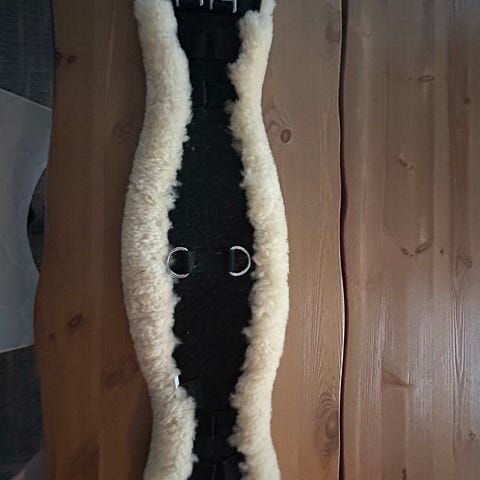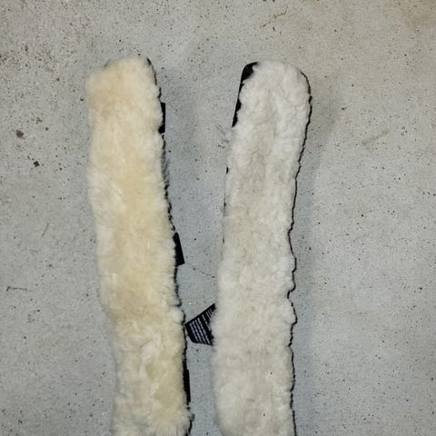 Siniharmaat, hyväkuntoiset lampaankarvaiset pehmusteet martingaaliin. Kätevä tarranauha kiinnitys kaikissa ja tarrat ovat oikein napakat edelleen.