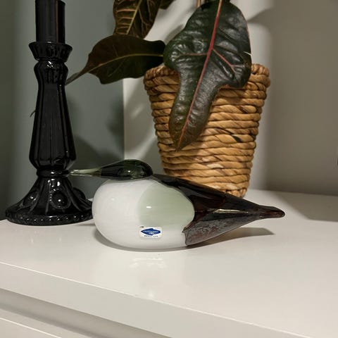 Signeerattu Oiva Toikan lasilintu Haahka, pituus 21 cm, paino 761 g