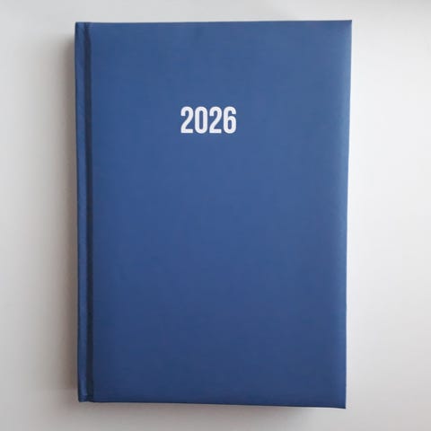 Kalenteri vuodelle 2026. Sisältää tärkeimmät juhlapyhät. Mukana lukunauha. A5 koko (noin 15x21cm), 320sivua. Pehmustetut kannet.