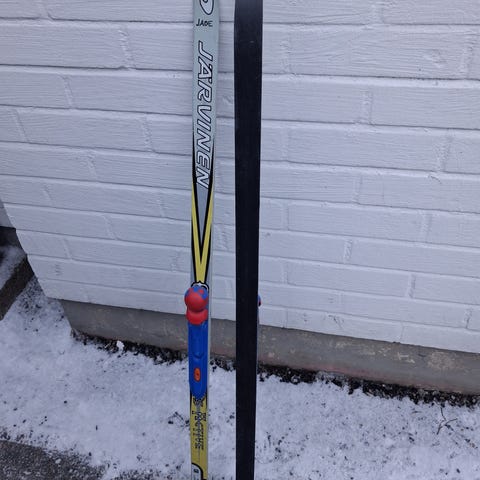 Peltonen sukset, pituus 120 cm NNN siteellä ja suksisauvat 100 cm.