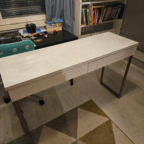 Ihan hyvä kuntoinen työpöytä jossa on pieni lohkeama, mutta se ei ole ainakaan minua haitannut.
