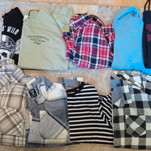Teini on käyttänyt näitä n. 164/170-kokoisena. Kaikki kunnoltaan ehjiä, puhtaita ja siistejä, varmasti jotain pientä käytön jälkeä kuitenkin löytyy.