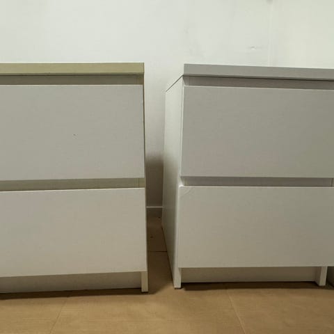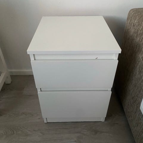 Valkoinen Ikean Kullen-lipasto, jossa kaksi vetolaatikkoa. Päällilevyssä muutamia pieniä jälkiä, näkyy kuvassa. Nouto Turun Nummesta, maksu käteinen/Mobilepay.