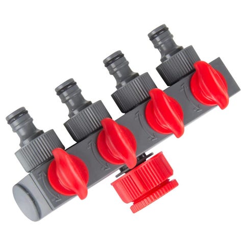 Kasteluletkujen haaroitukseen vesipostissa. Molemmissa haaroissa oma sulku- / virtaussäädin.