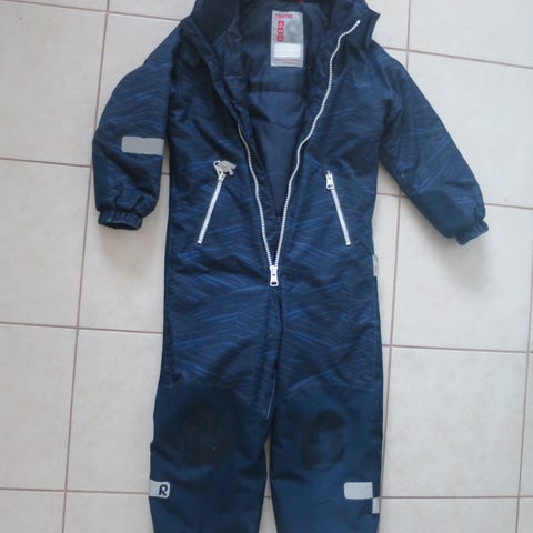 Reima toppahaalari 128, polvissa kulumaa ja toisessa polvessa pienet reiät, kyynärpäissä kulumaa. Vetoketjut ja peppu ehjät.